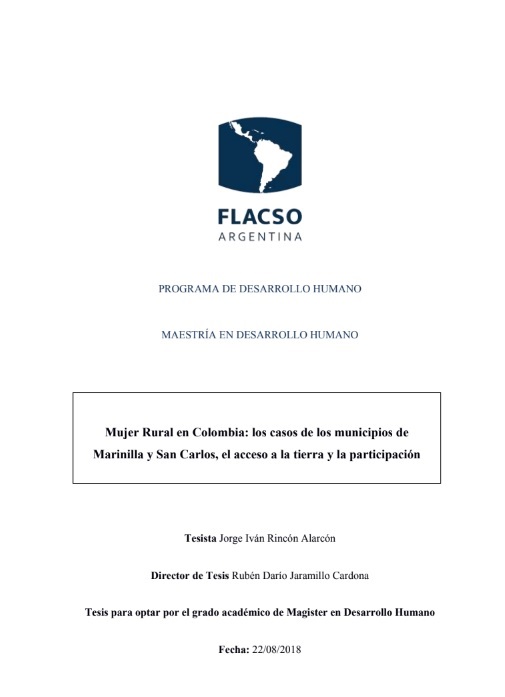 Rincón Alarcón, Jorge Iván (2019). Mujer rural en Colombia :los casos de los municipios de Marinilla y San Carlos, el acceso a la tierra y la participación
