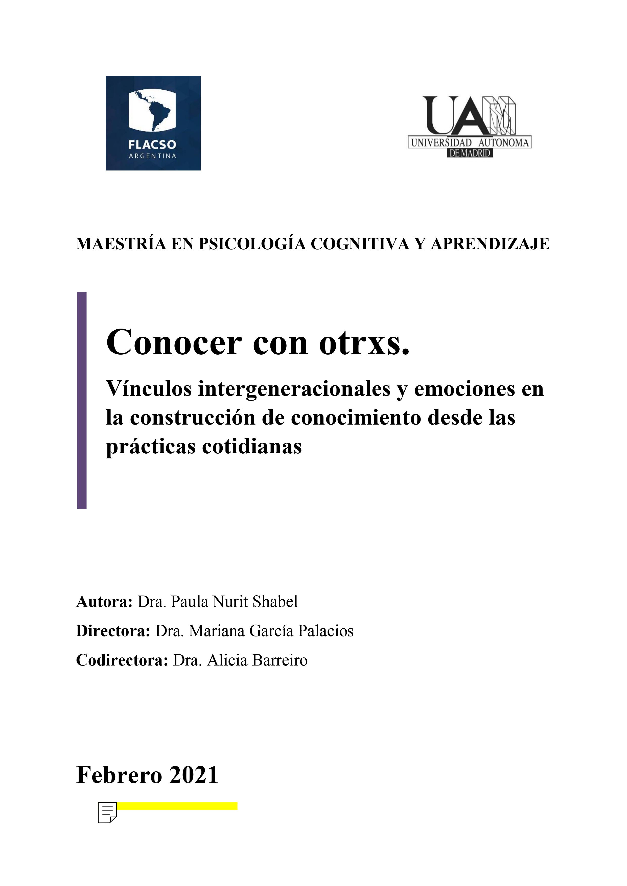 Shabel, Paula Nurit (2021). Conocer con otrxs: vínculos intergeneracionales y emociones en la construcción de conocimiento desde las prácticas cotidianas