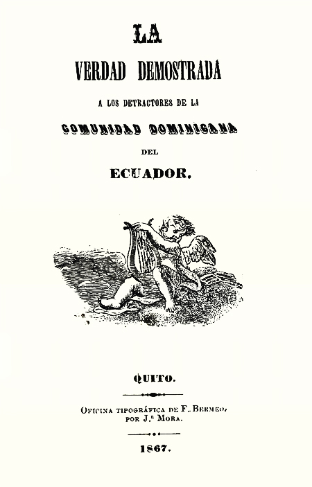 1867. La verdad demostrada : a los detractores de la Comunidad Dominicana del Ecuador. Quito, Ecuador : Oficina Tipográfica de F. Bermeo.
