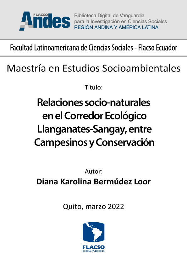 Bermúdez Loor, Diana Karolina. 2022. Relaciones socio-naturales en el Corredor Ecológico Llanganates-Sangay, entre Campesinos y Conservación. Tesis de maestría, Flacso Ecuador.