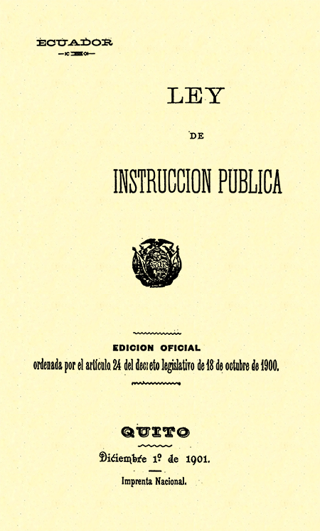 Ley de instrucción pública: Edición Oficial ordenada por el artículo 24 del decreto legislativo de 10 de octubre de 1900. 1901. Quito, Ecuador : Imprenta Nacional.