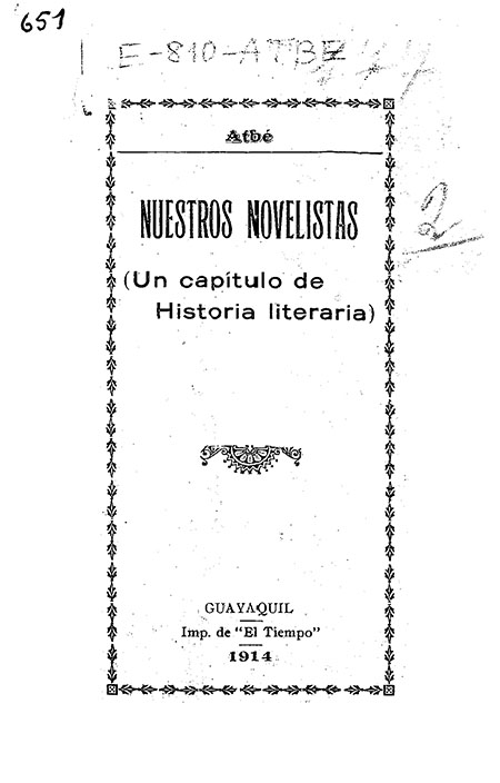 Crespo Toral, Remigio. 1914. Nuestros novelistas. Guayaquil : Imprenta de El Tiempo.