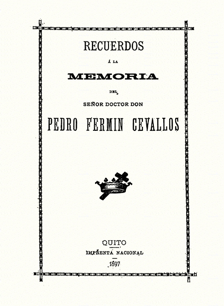 1897. Recuerdos á la memoria del señor doctor Don Pedro Fermín Cevallos. Quito, Ecuador : Imprenta Nacional.