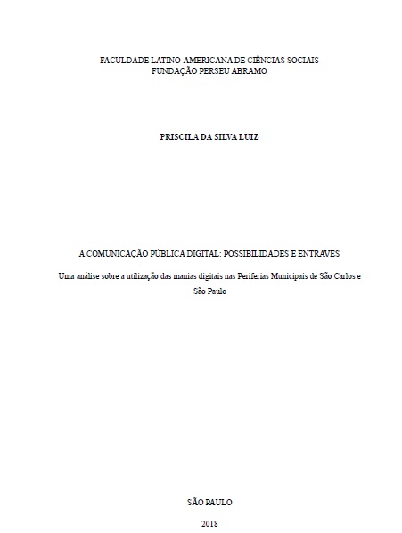 Silva Luiz, Priscila da. 2018. A comunicação pública digital: possibilidades e entraves. Uma análise sobre a utilização das mídias digitais nas Prefeituras Municipais de São Carlos e São Paulo. Tesis de maestría, Flacso Brasil.