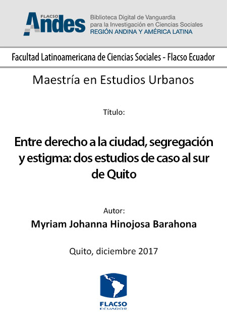 Hinojosa Barahona, Myriam Johanna. 2017. Entre derecho a la ciudad, segregación y estigma: dos estudios de caso al Sur de Quito. Tesis de maestría, Flacso Ecuador.