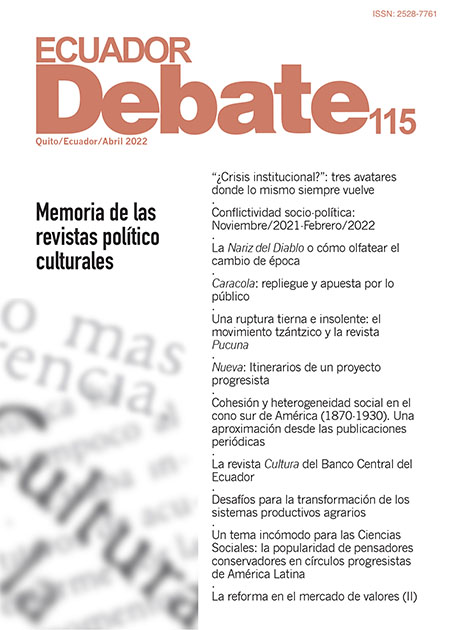 CAAP (Centro Andino de Acción Popular). 2022. Memorias de las revistas político culturales. Ecuador Debate, 115.