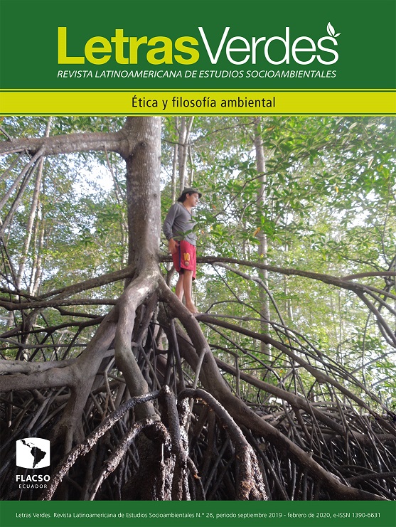 Flacso Ecuador (Facultad Latinoamericana de Ciencias Sociales Ecuador). Programa de Estudios Socioambientales. 2019. Ética y filosofía ambiental. Letras Verdes. Revista Latinoamericana de Estudios Socioambientales Flacso - Ecuador, 26.