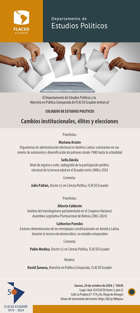 Curvale, Carolina, cood. 2024. Coloquio de Estudios Políticos: Cambios institucionales, élites y elecciones. FLACSO Ecuador, 24 de octubre, archivo en MP4.