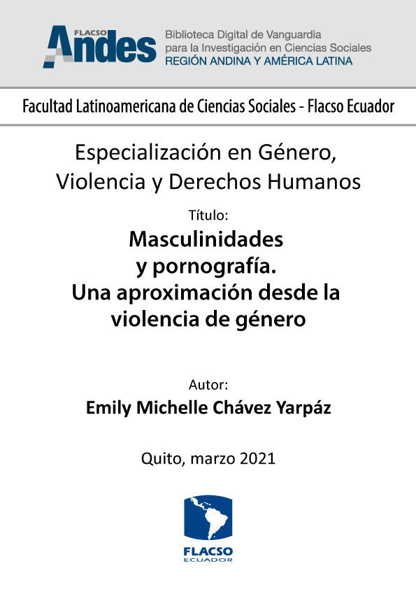 Chávez Yarpáz, Emily Michelle. 2021. Masculinidades y pornografía. Una aproximación desde la violencia de género. Tesina de especialización, Flacso Ecuador.