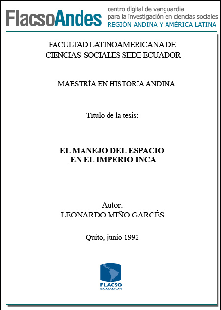 Miño Garcés, Leonardo (1992). El manejo del espacio en el Imperio Inca. Maestría en Historia Andina, FLACSO Sede Ecuador. Quito. 167 p.