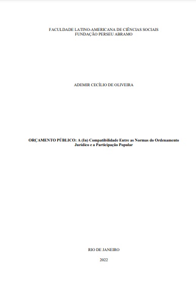 Cecílio de Oliveira, Ademir. 2023. Orçamento Público: A (In) Compatibilidade Entre As Normas Do Ordenamento Jurídico e a Participação Popular. Tesis de maestría, Flacso Brasil.