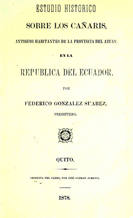 González Suárez, Federico. 1878. Estudio histórico sobre los cañaris, antiguos habitantes de la Provincia del Azuay en la República del Ecuador. Quito, Ecuador : Imprenta del Clero, por José Guzmán Almeida.