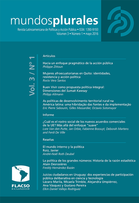 Flacso Ecuador (Facultad Latinoamericana de Ciencias Sociales sede Ecuador) y Universidad Nacional de Colombia. 2016. Mundos Plurales. Revista Latinoamericana de Políticas y Acción Pública, 3(1).