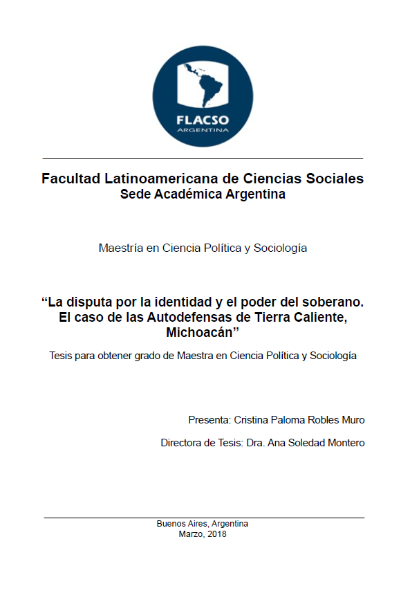 Robles Muro, Cristina Paloma. (2018). La disputa por la identidad y el poder del soberano : el caso de las Autodefensas de Tierra Caliente, Michoacán. Tesis de Maestría. FLACSO. Sede Académica Argentina, Buenos Aires.