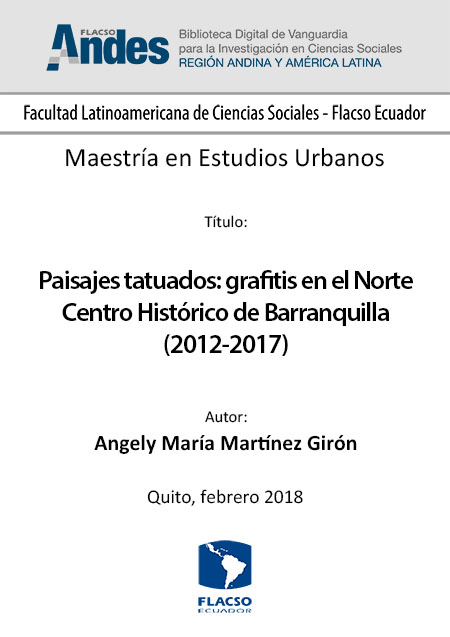 Martínez Girón, Angely María. 2018. Paisajes tatuados: grafitis en el Norte Centro Histórico de Barranquilla (2012-2017). Tesis de maestría, Flacso Ecuador.