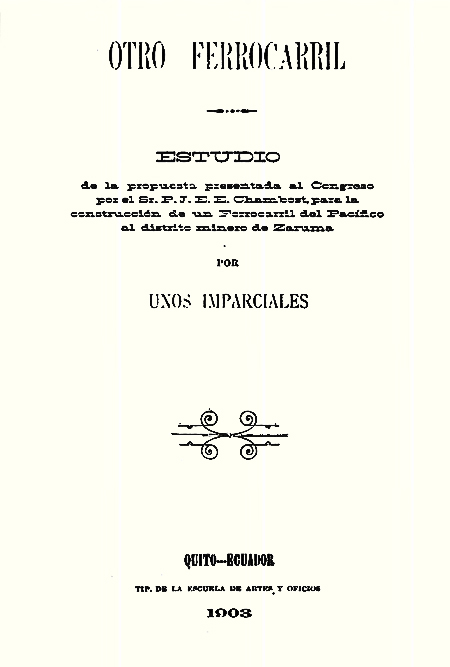 Otro ferrocarril: estudio de la propuesta presentada al Congreso por el Sr. P. J. E. E. Chambost, para la construcción de un Ferrocarril del Pacífico al Distrito Minero de Zaruma [Folleto].