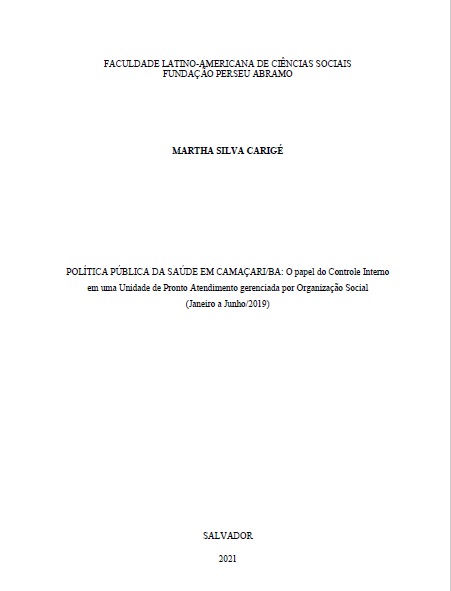 Silva Carigé, Martha. 2021. Política pública da saúde de Camaçari/BA: o papel do controle interno em uma Unidade de Pronto Atendimento gerenciada por Organização Social (janeiro a junho/2019). Tesis de maestría, Flacso Brasil.