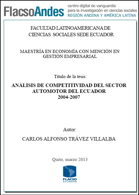 Trávez Villalba, Carlos Alfonso. 2013. Análisis de competitividad del sector automotor del Ecuador 2004-2007. Tesis de maestría, Flacso Ecuador.