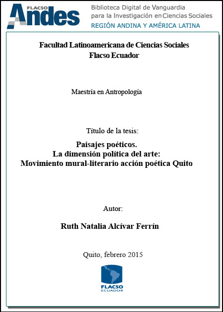 Alcívar Ferrín, Ruth Natalia. 2015. Paisajes poéticos : la dimensión política del arte: movimiento mural- literario acción poética Quito. Tesis de maestría, Flacso Ecuador.