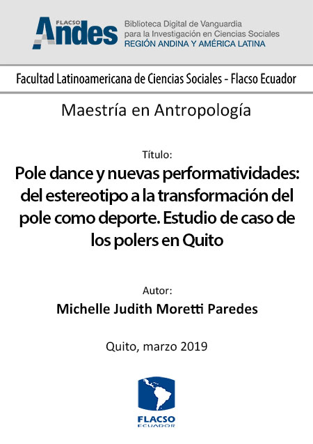 Moretti Paredes, Michelle Judith. 2019. Pole dance y nuevas performatividades: del estereotipo a la transformación del pole como deporte. Estudio de caso de los polers en Quito. Tesis de maestría, Flacso Ecuador.