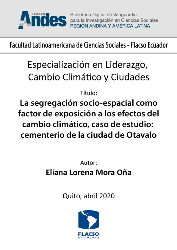 Mora Oña, Eliana Lorena. 2020. La segregación socio-espacial como factor de exposición a los efectos del cambio climático, caso de estudio: cementerio de la ciudad de Otavalo. Tesina de especialización, Flacso Ecuador.