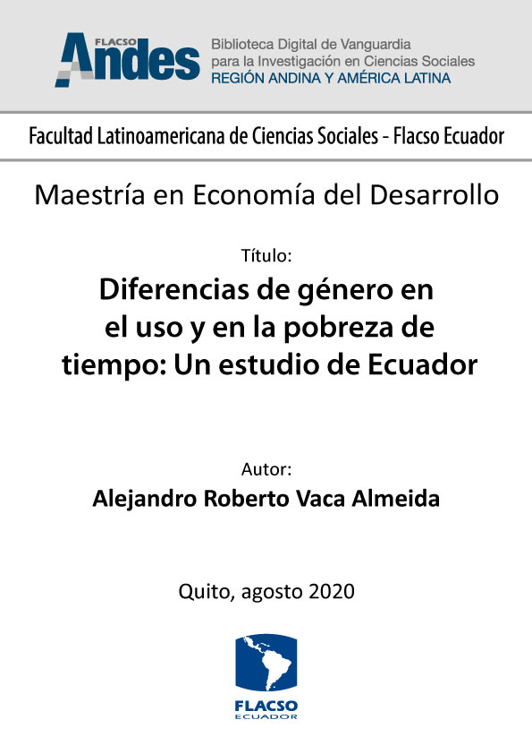 Vaca Almeida, Alejandro Roberto. 2020. Diferencias de género en el uso y en la pobreza de tiempo: Un estudio de Ecuador. Tesis de maestría, Flacso Ecuador.