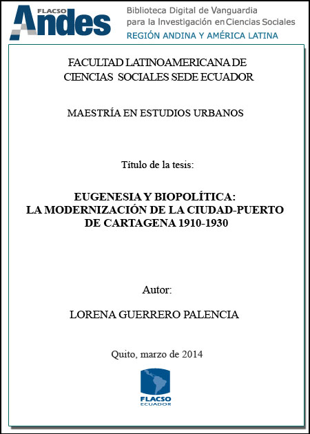 Guerrero Palencia, Lorena. 2014. Eugenesia y biopolítica: la modernización de la ciudad-puerto de Cartagena 1910-1930. Tesis de maestría, FLACSO Sede Ecuador.