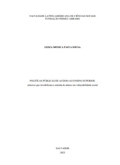 Monica Paiva Sousa, Geiza. 2023. Politícas públicas de acesso ao ensino superior: entraves que inviabilizam a entrada de alunos em vulnerabilidade social. Tesis de maestría, Flacso Brasil.