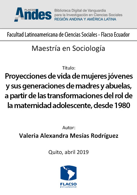 Mesías Rodríguez, Valeria Alexandra. 2019. Proyecciones de vida de mujeres jóvenes y sus generaciones de madres y abuelas, a partir de las transformaciones del rol de la maternidad adolescente, desde 1980. Tesis de maestría, Flacso Ecuador.
