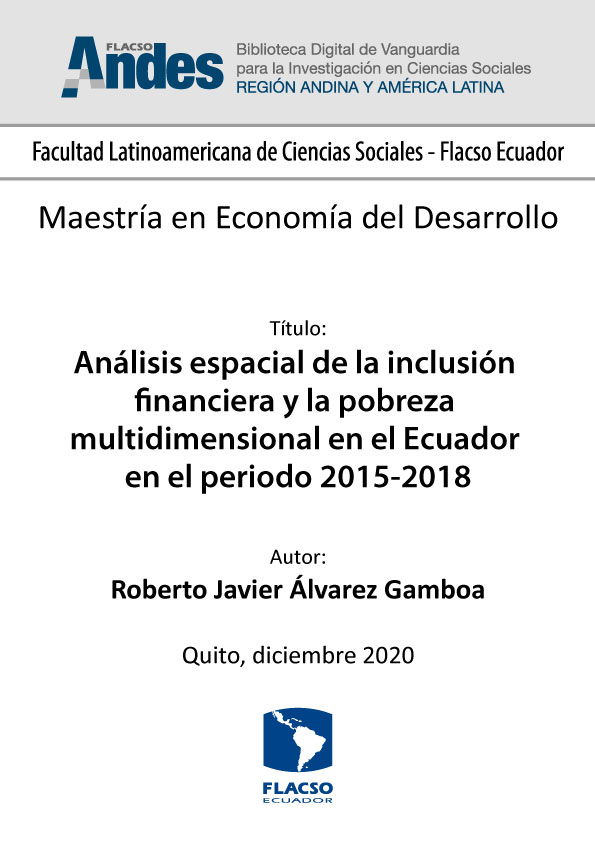 Álvarez Gamboa, Roberto Javier. 2020. Análisis espacial de la inclusión financiera y la pobreza multidimensional en el Ecuador en el periodo 2015-2018. Tesis de maestría, Flacso Ecuador.