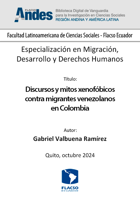 Valbuena Ramírez, Gabriel. 2024. Discursos y mitos xenofóbicos contra migrantes venezolanos en Colombia. Tesina de especialización, Flacso Ecuador.