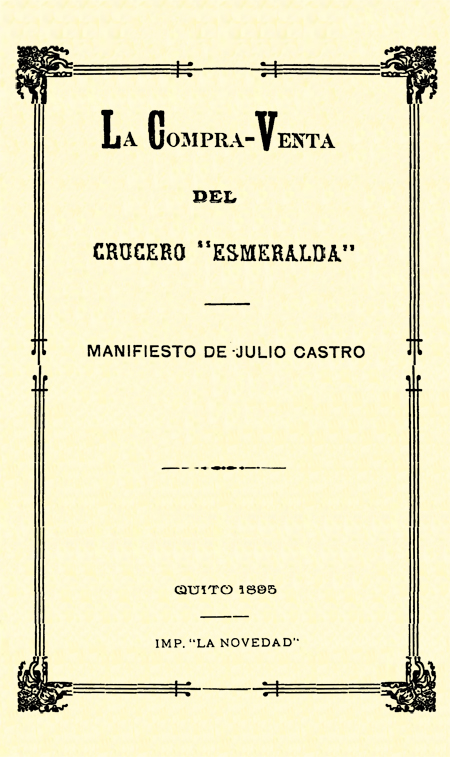 Castro, Julio. 1895. La compra-venta del crucero "Esmeralda" : manifiesto de Julio Castro. Quito, Ecuador : Imp. "La Novedad".