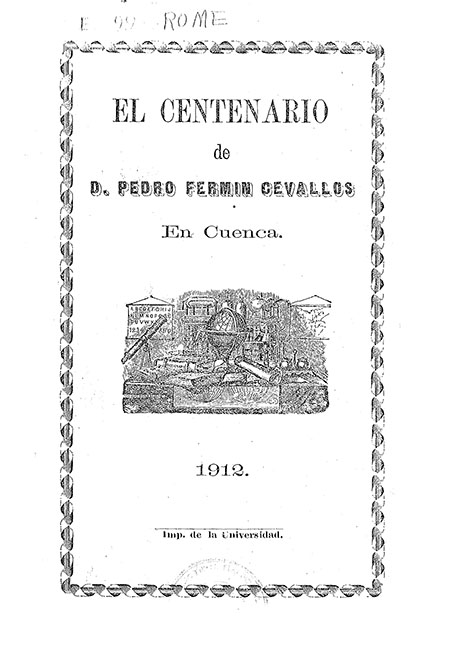 Crespo Toral, Remigio. 1912. El centenario de D. Pedro Fermín Cevallos en Cuenca. Cuenca : s. e.