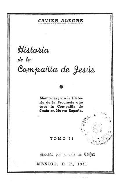 Alegre, Francisco Javier. 1941. Memorias para la historia de la provincia que tuvo la Compañía de Jesús en Nueva España. México , DF : [sn] .