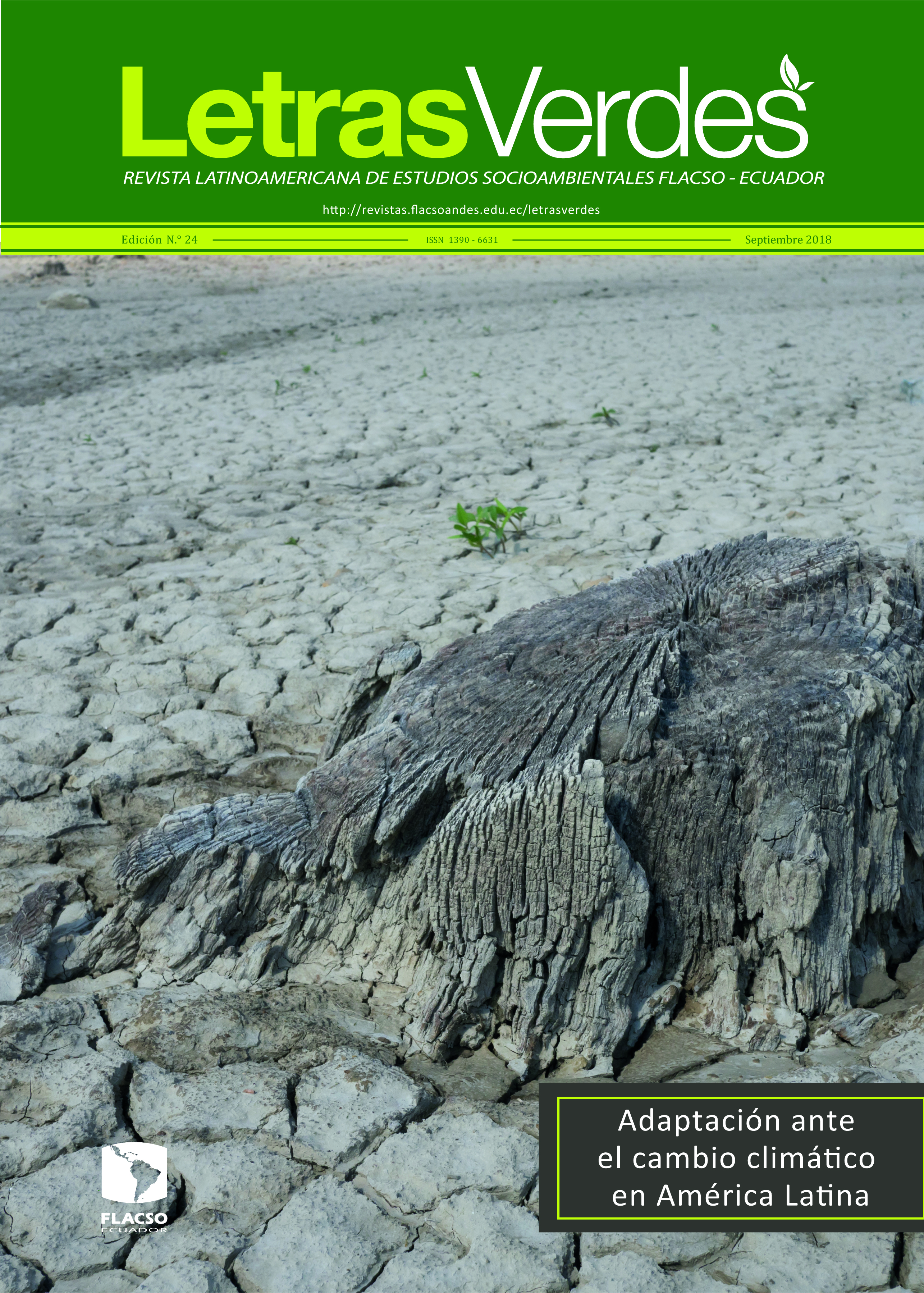 Flacso Ecuador (Facultad Latinoamericana de Ciencias Sociales Ecuador). Programa de Estudios Socioambientales. 2018. Adaptación ante el cambio climático en América Latina. Letras Verdes. Revista Latinoamericana de Estudios Socioambientales Flacso - Ecuador, 24.