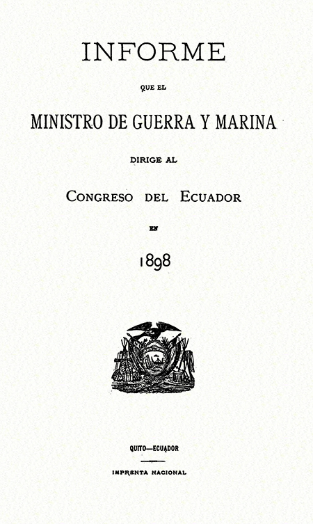 Ministerio de Guerra y Marina. 1898. Informe que el Ministro de Guerra y Marina dirige al Congreso del Ecuador en 1898. Quito, Ecuador : Imprenta Nacional.