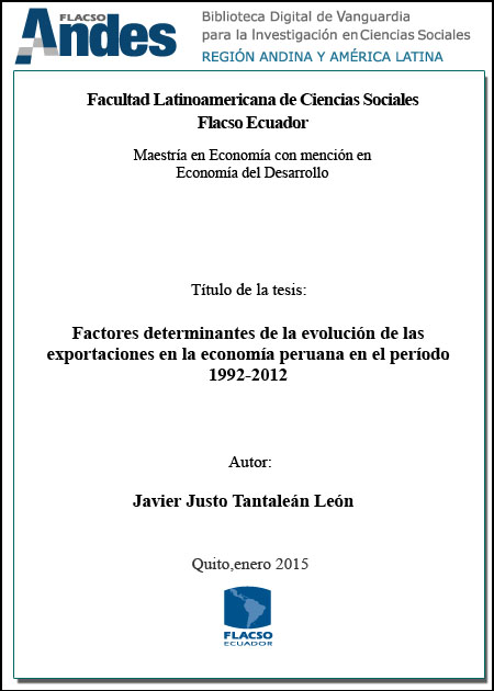 Tantaleán León, Javier Justo. 2015. Factores determinantes de la evolución de las exportaciones en la economía peruana en el período 1992-2012.Tesis de maestría, Flacso Ecuador.