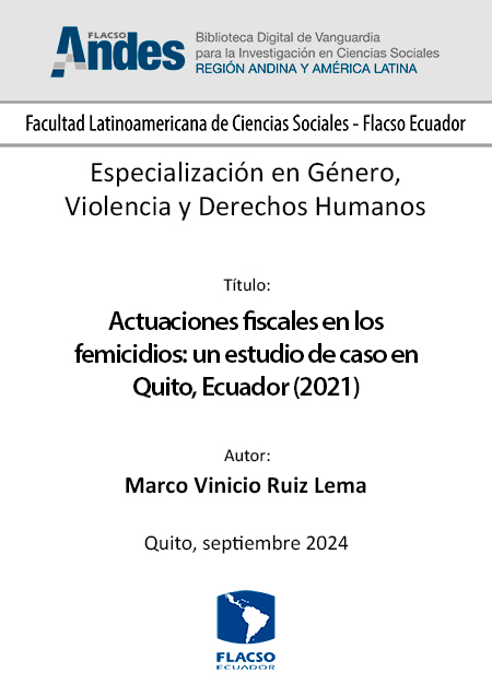 Ruiz Lema, Marco Vinicio. 2024. Actuaciones fiscales en los femicidios: un estudio de caso en Quito, Ecuador (2021). Tesina de especialización, Flacso Ecuador.