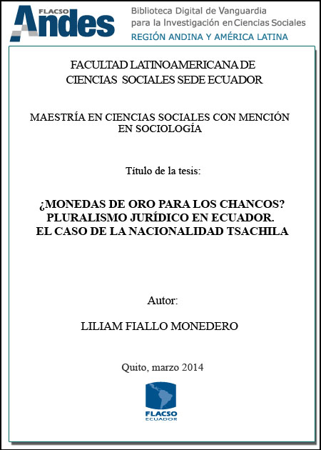 Fiallo Monedero, Liliam. 2014. ¿Monedas de oro para los chanchos? Pluralismo jurídico en Ecuador: El caso de la nacionalidad Tsachila. Tesis de maestría, FLACSO Sede Ecuador.