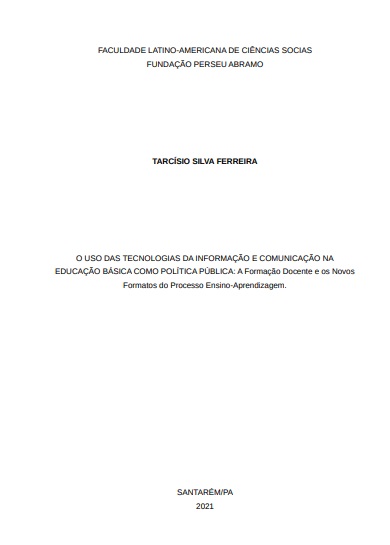 Silva Ferreira, Tarcísio. 2021. O USO DAS TECNOLOGIAS DA INFORMAÇÃO E COMUNICAÇÃO NA EDUCAÇÃO BÁSICA COMO POLÍTICA PÚBLICA: A Formação Docente e os Novos Formatos do Processo Ensino-Aprendizagem. Tesis de maestría, Flacso Brasil.
