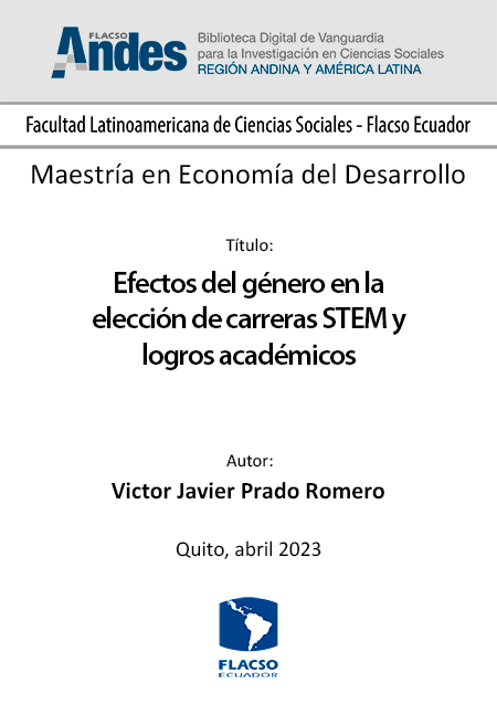 Prado Romero, Victor Javier. 2023. Efectos del género en la elección de carreras STEM y logros académicos. Tesis de maestría, Flacso Ecuador.