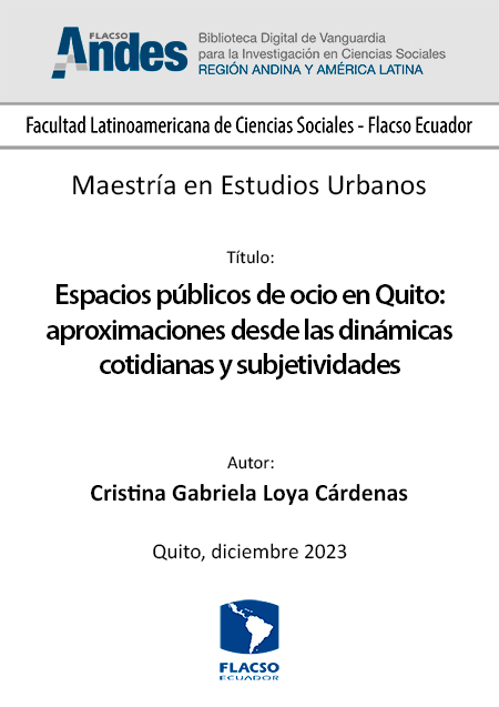 Loya Cárdenas, Cristina Gabriela. 2023. Espacios públicos de ocio en Quito: aproximaciones desde las dinámicas cotidianas y subjetividades. Tesis de maestría, Flacso Ecuador.