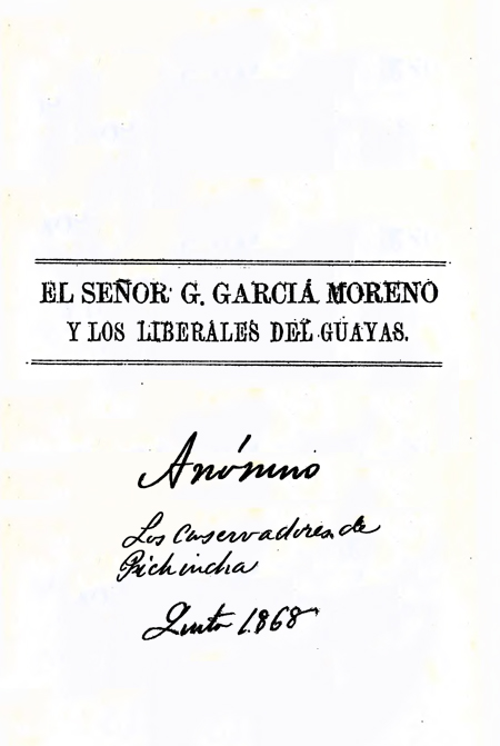 Conservadores de Pichincha. 1868. El señor G. García Moreno y los liberales del Guayas. Quito, Ecuador : Imprenta Nacional por M. Mosquera.