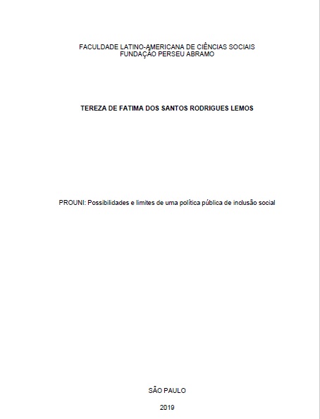 Santos Rodrigues Lemos, Tereza de Fátima. 2019. PROUNI: possibilidades e limites de uma política pública de inclusão social. Tesis de maestría, Flacso Brasil.