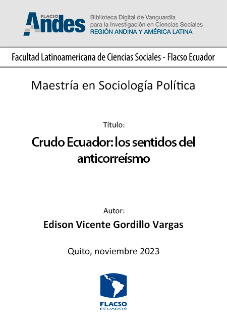 Gordillo Vargas, Edison Vicente. 2023. Crudo Ecuador: los sentidos del anticorreísmo. Tesis de maestría, Flacso Ecuador.