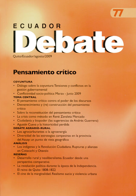 Ecuador Debate. Pensamiento crítico. Centro Andino de Acción Popular. Quito: CAAP, (no. 77, agosto 2009): 230 p. ISSN: 1012-1498