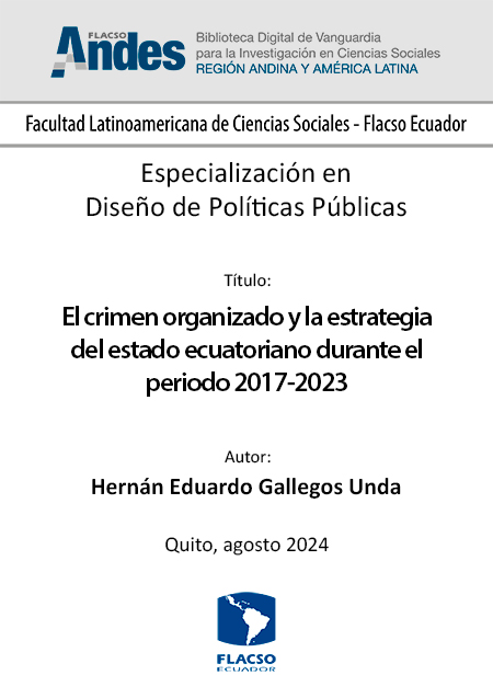 Gallegos Unda, Hernán Eduardo. 2024. El crimen organizado y la estrategia del Estado ecuatoriano durante el periodo 2017-2023. Tesina de especialización, Flacso Ecuador.
