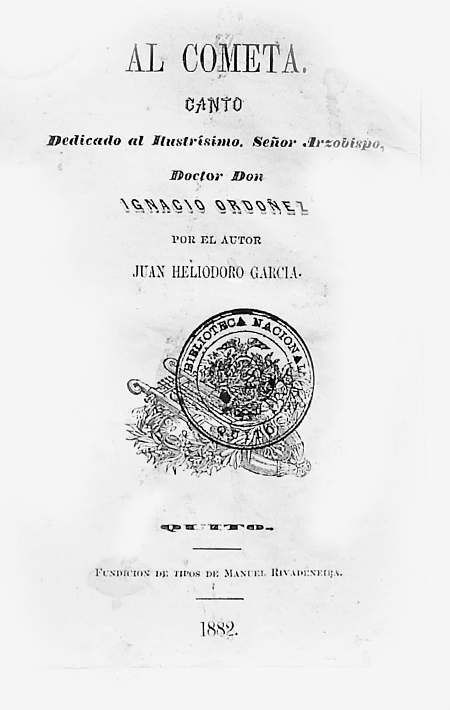 García, Juan Heliodoro . 1882. Al Cometa. Quito, Ecuador : Fundición de tipos de Manuel Rivadeneira.