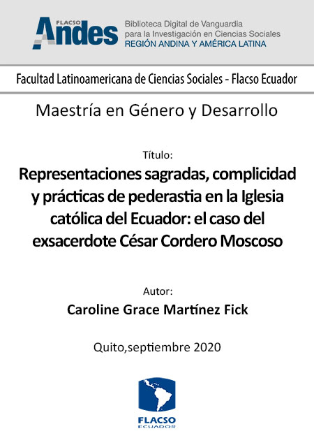 Martínez Fick, Caroline Grace . 2020. Representaciones sagradas, complicidad y prácticas de pederastia en la Iglesia católica del Ecuador: el caso del exsacerdote César Cordero Moscoso. Tesis de maestría, Flacso Ecuador.
