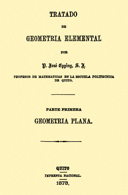 Epping, José. 1873. Tratado de geometría elemental : parte primera Geometría Plana. Quito, Ecuador : Imprenta Nacional.